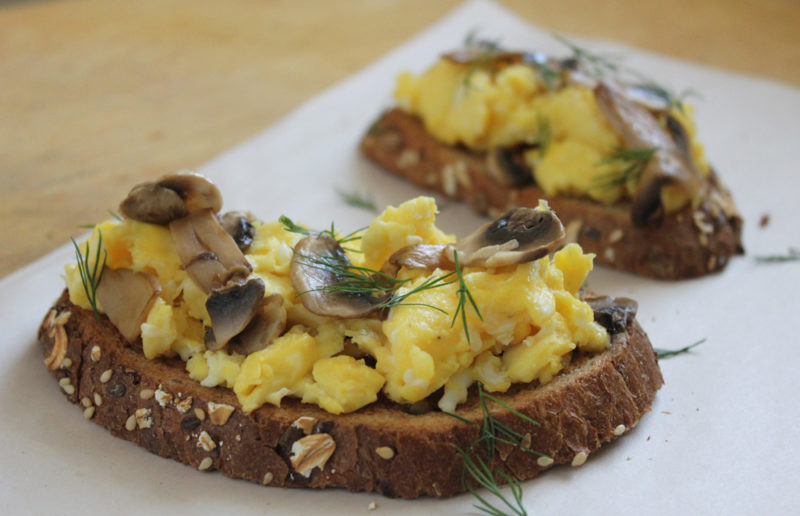 Te gustarán más al saber que los ingredientes son muy pocos y los pasos para elaborarlas son solo tres: Tostar el pan, preparar los huevos revueltos y agregar los champiñones. ¡Así de sencillo!