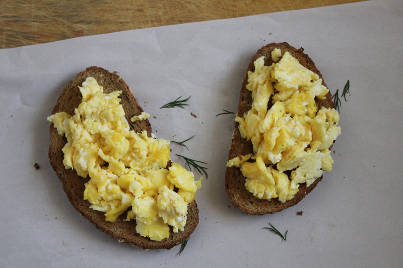 - Agrega la cucharada de mantequilla restante a la misma sartén y prepara ahí mismo los huevos revueltos.